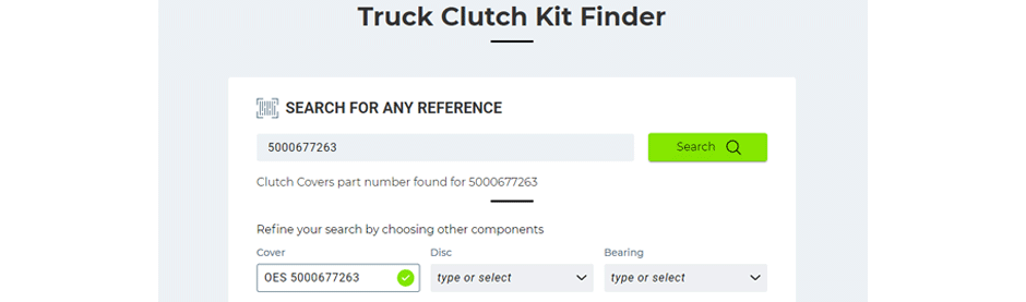 El Buscador de kits de embrague para camiones de Valeo, por otro lado, funciona en menos de un minuto.